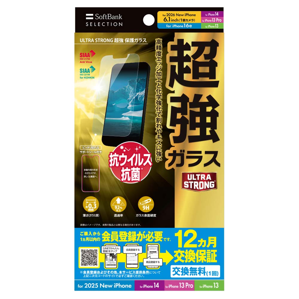 SoftBank SELECTION ULTRA STRONG 超強 保護ガラス for iPhone 16e / iPhone 14 / iPhone 13 Pro / iPhone 13 SB-I022-PFGA/US