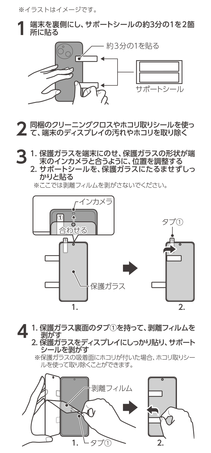 | 製品構成 | 保護ガラス×1、クリーニングクロス×1、ホコリ取りシール×1、サポートシール×2、 取扱説明書/保証書×1 |