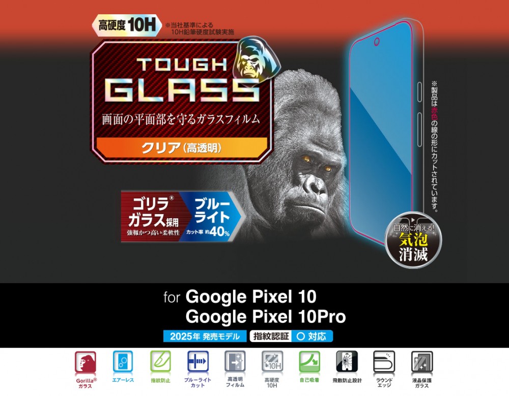 エレコム Google Pixel 10/Google Pixel 10 Pro/ガラスフィルム/ゴリラ/0.21mm/ブルーライトカット