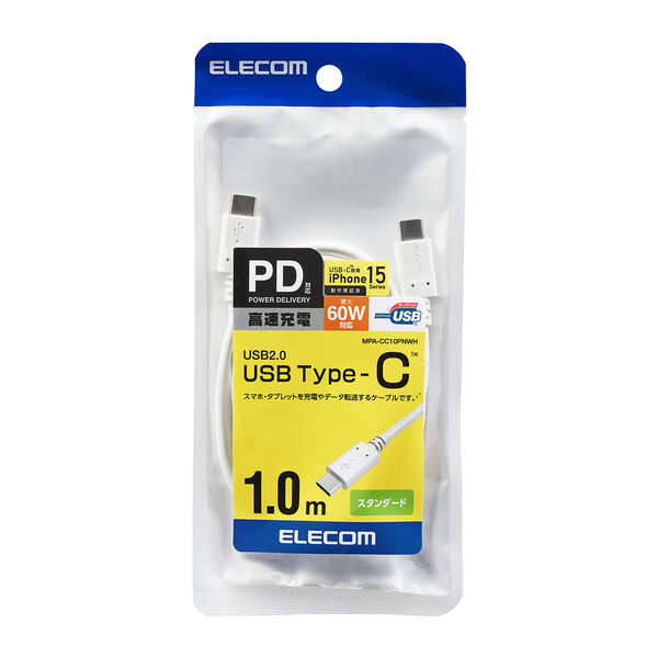 エレコム スマホ・タブレット用USBケーブル/USB(C-C)/スタンダード/Power Delivery対応/認証品/1.0m