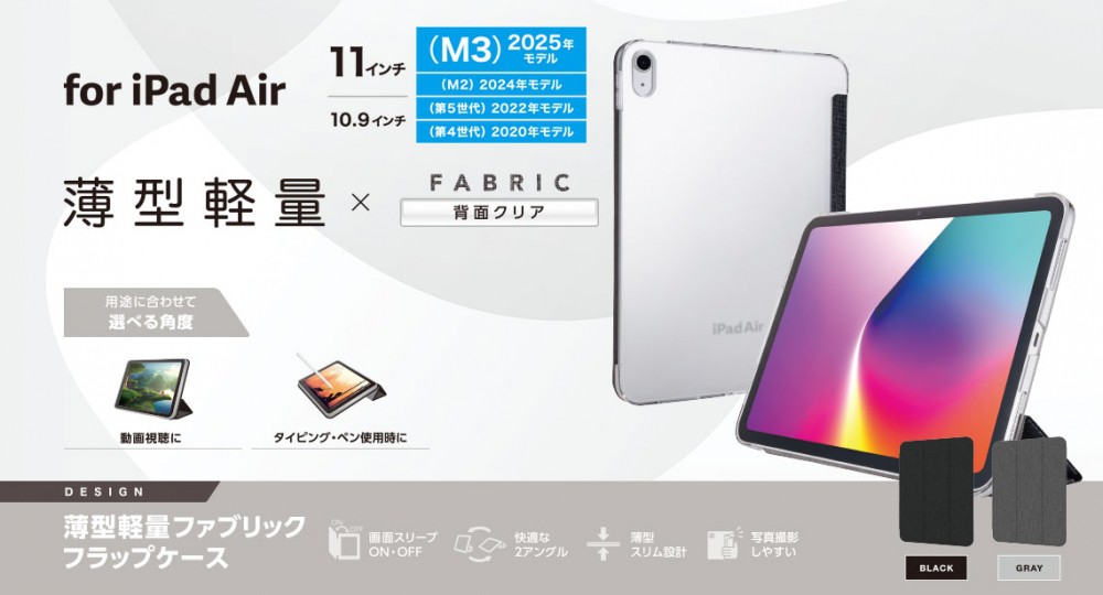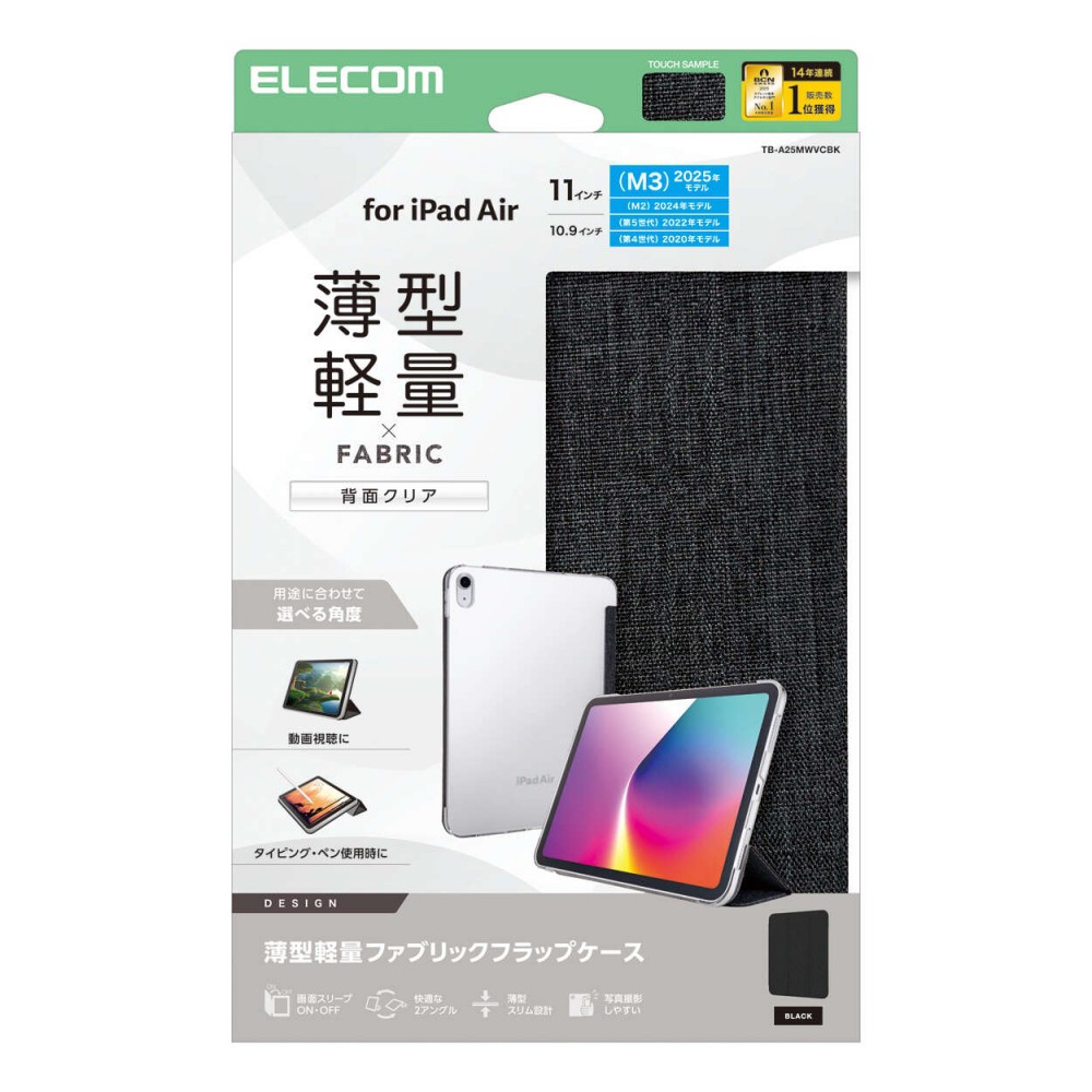 エレコム iPadAir 11インチ(M3/M2)/フラップケース/薄型軽量/ファブリック/背面クリア/2アングル