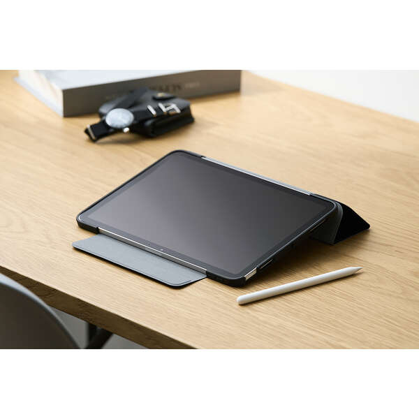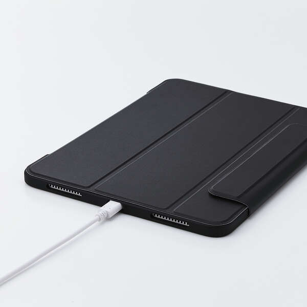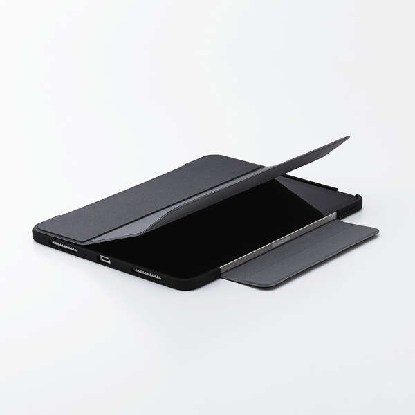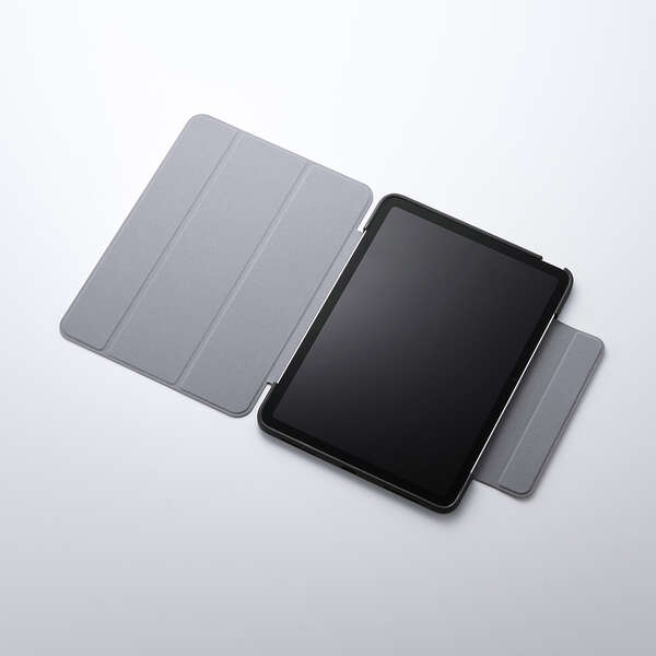 持ち歩き時に画面を保護するフラップ付きです。フラップを閉じるとスリープモードになり、開けるとスリープから復帰します。