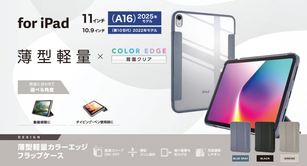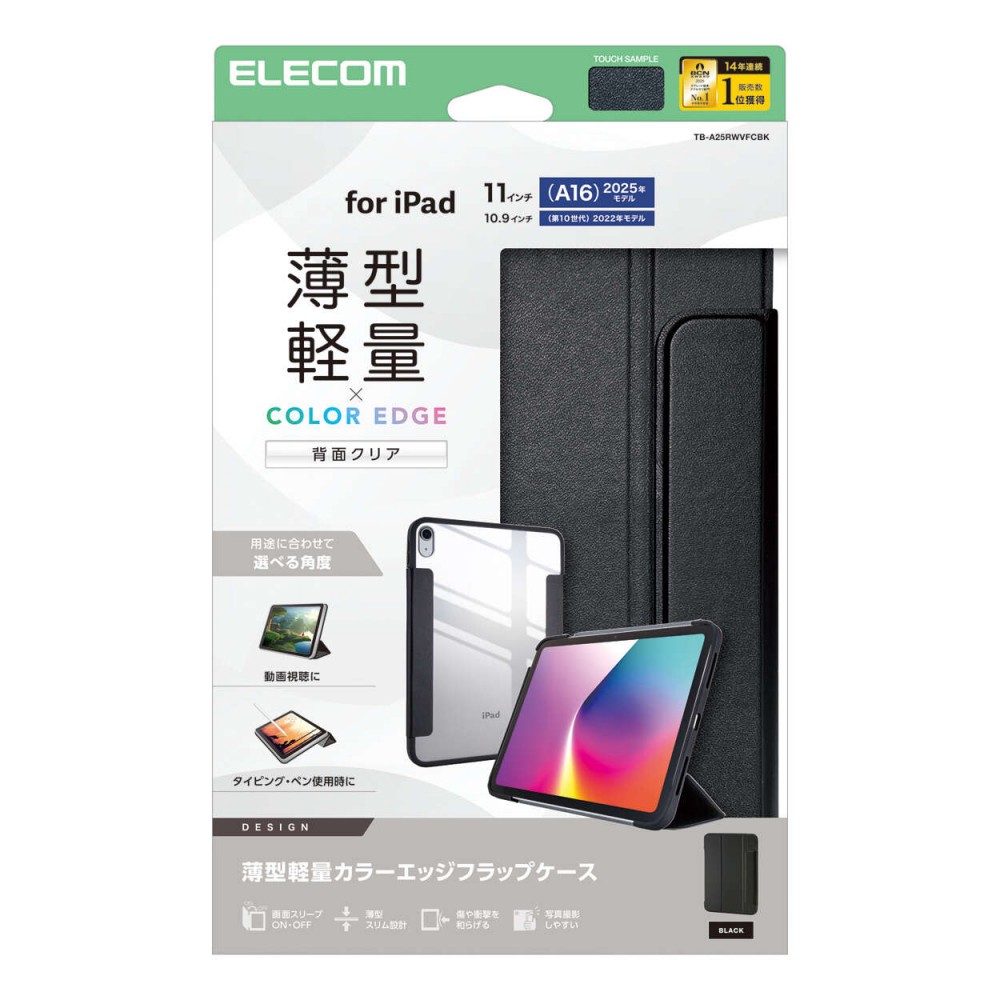 エレコム iPad11インチ(A16)/10.9インチ(第10世代)/フラップケース/薄型軽量/背面クリア/フレームカラー