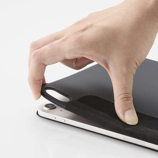 マグネット式の留め具を採用しており、Apple Pencilを収納したままフラップを固定できます。