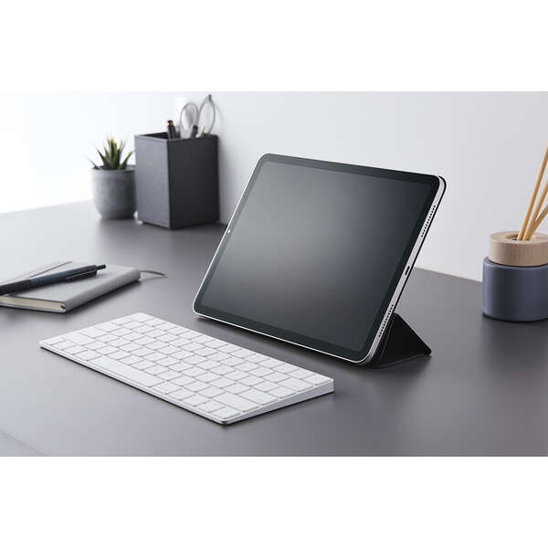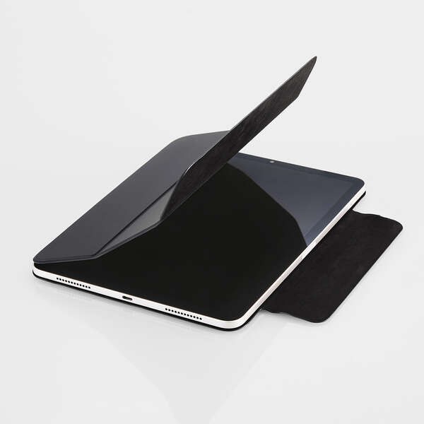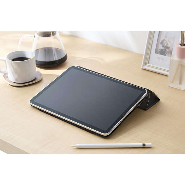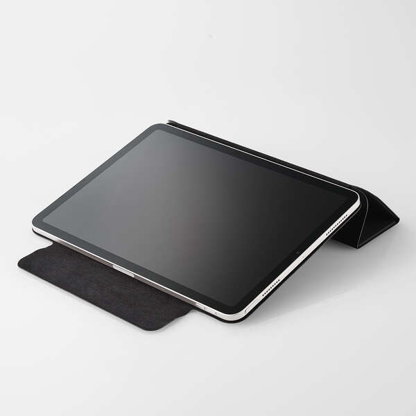 フラップカバーを三つ折りにすることで、動画視聴と、ドローイング・タイピングに最適な2通りの角度で使用できます。