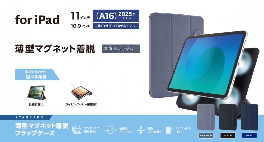 エレコム iPad11インチ(A16)/10.9インチ(第10世代)/フラップケース/超薄型/マグネット装着/スリープ対応