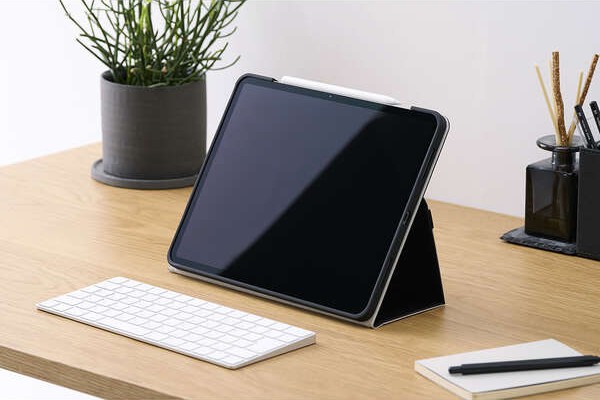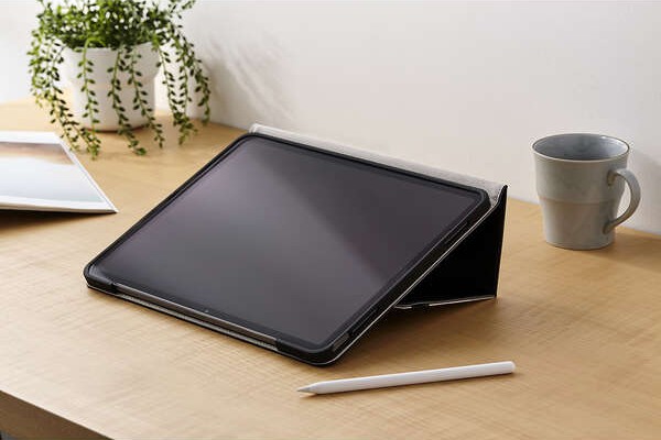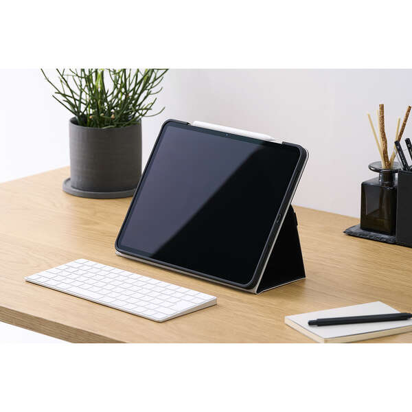 動画視聴やタイピングなどシーンに合わせて2アングルにできます。ペンホルダー付き。ビジネスシーンでのご利用にもおすすめです。