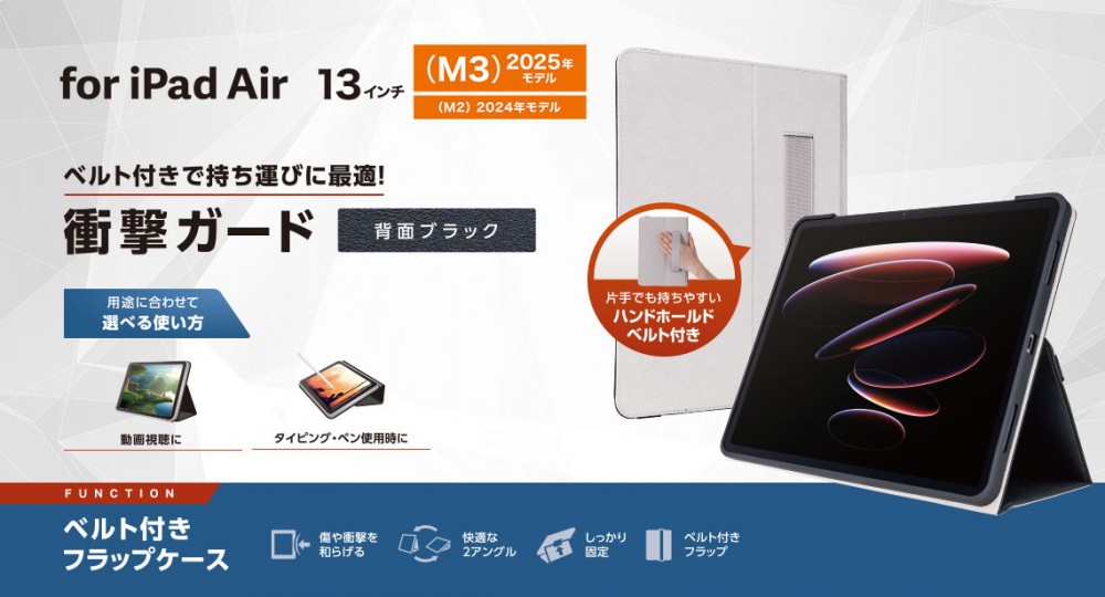 エレコム 13インチiPad Air(M2)/iPad 第10世代/フラップケース/衝撃ガード/ベルト付/2アングル/軽量