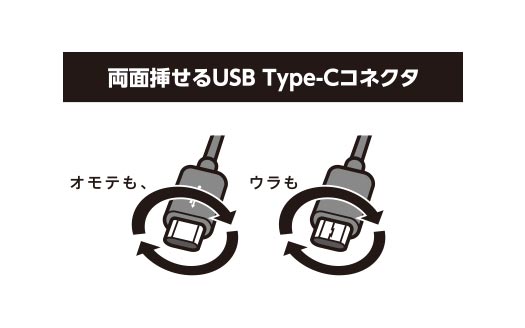 新規格のUSB Type-Cコネクタは、ウラ、オモテに関係なくケーブルを挿し込めます。