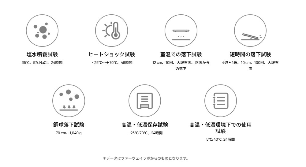 多数の品質試験をクリア