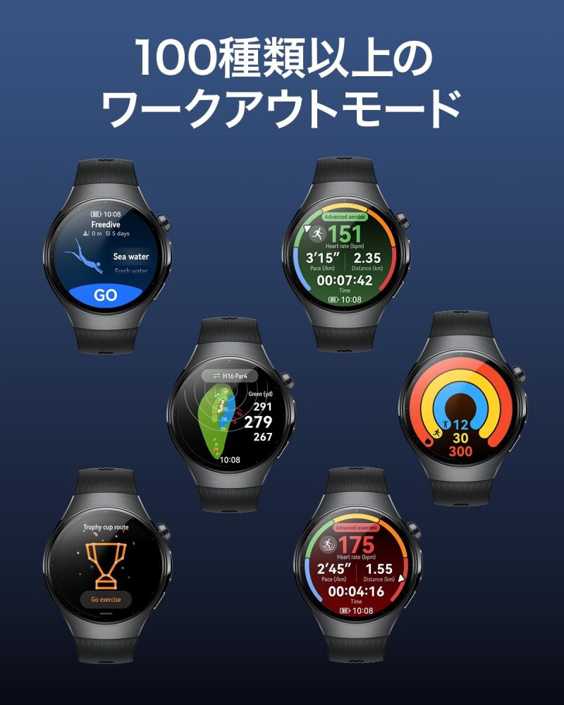 高性能NPUを搭載した直感的なスマートジェスチャーで、タッチフリーで操作可能。【プロレベルのワークアウトモード】ゴルフやフリーダイビングなどのプロレベルのスポーツを含む、100以上のワークアウトモードに対応。