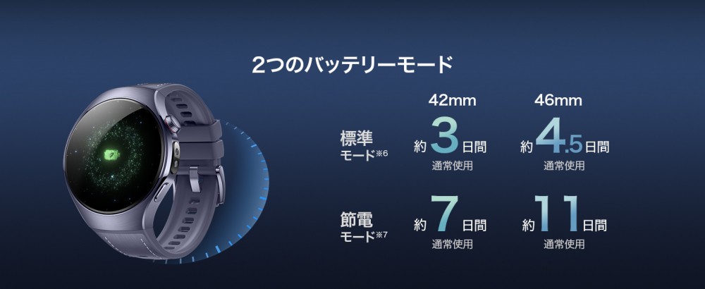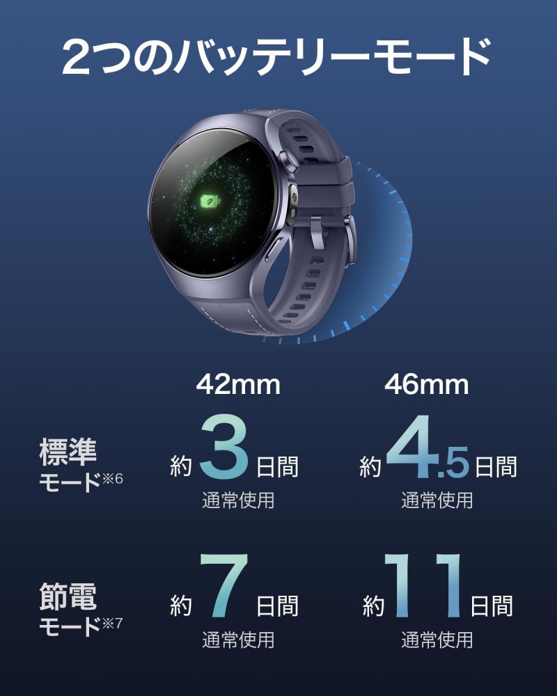 eSIMサービスにより、スマートフォンなしで通話が可能。Wi-Fi 6を搭載し、一日中安定した接続を提供。 【2つのバッテリーモード】:お気に入りの機能をすべて利用できる標準モードと、節電モード。この2つのモードをわずか数秒で簡単に切り替えることができます。