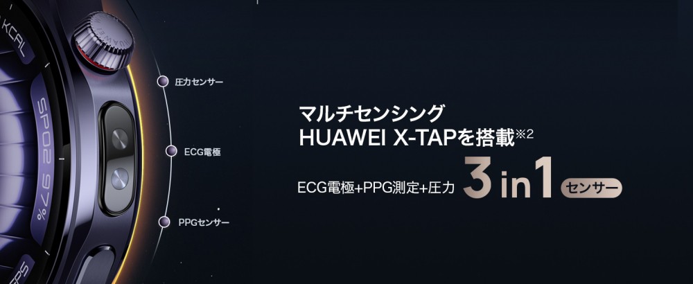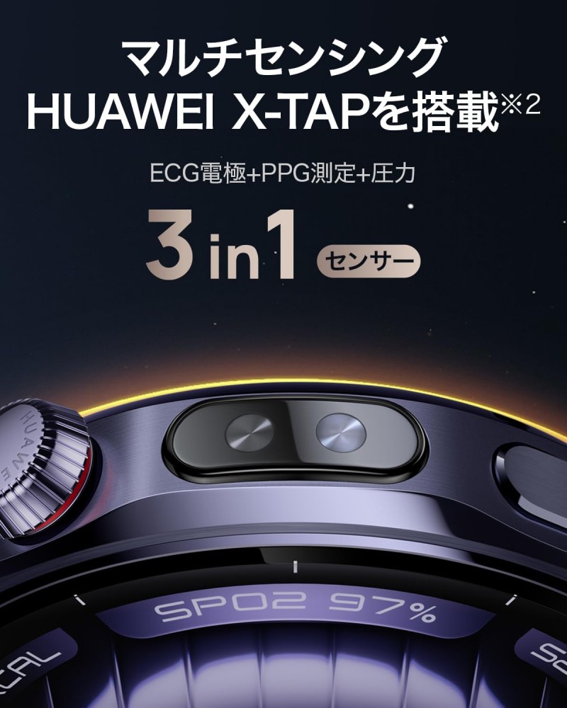 ECG、PPG、圧力を一つのセンサーに統合したHUAWEI X-TAPで高速かつ高精度の測定値を提供します。