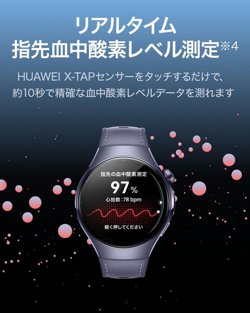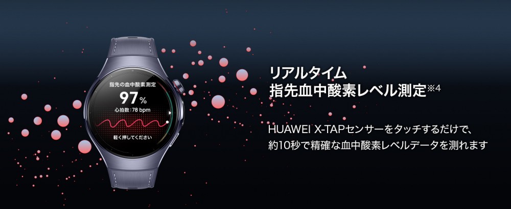 リアルタイムの指先血中酸素レベル測定をサポート。HUAWEI X-TAPを約10秒タップするだけで、精確な血中酸素レベルの測定値が得られます。