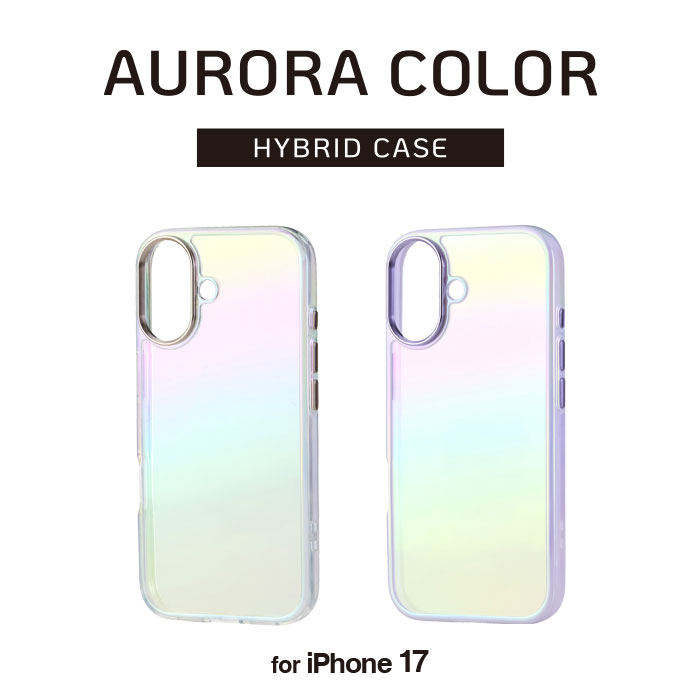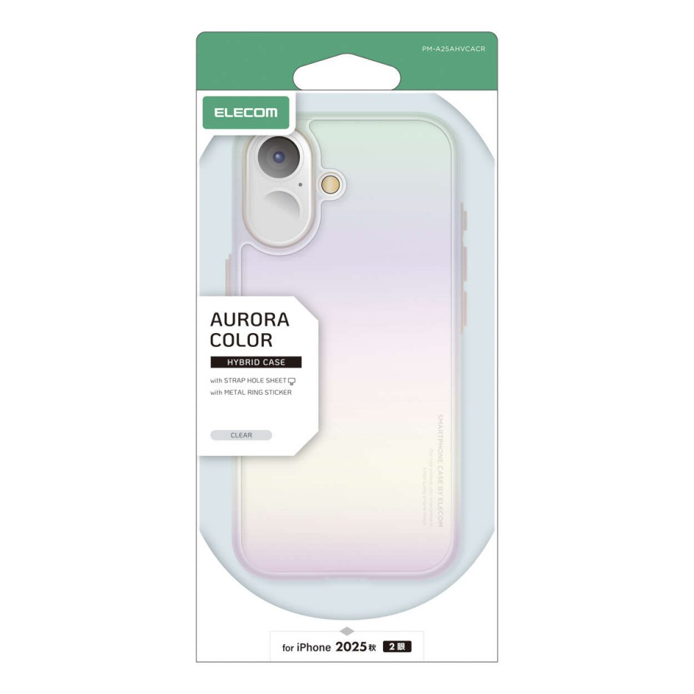 エレコム iPhone 17/ハイブリッドケース/オーロラカラー/メタルステッカー付