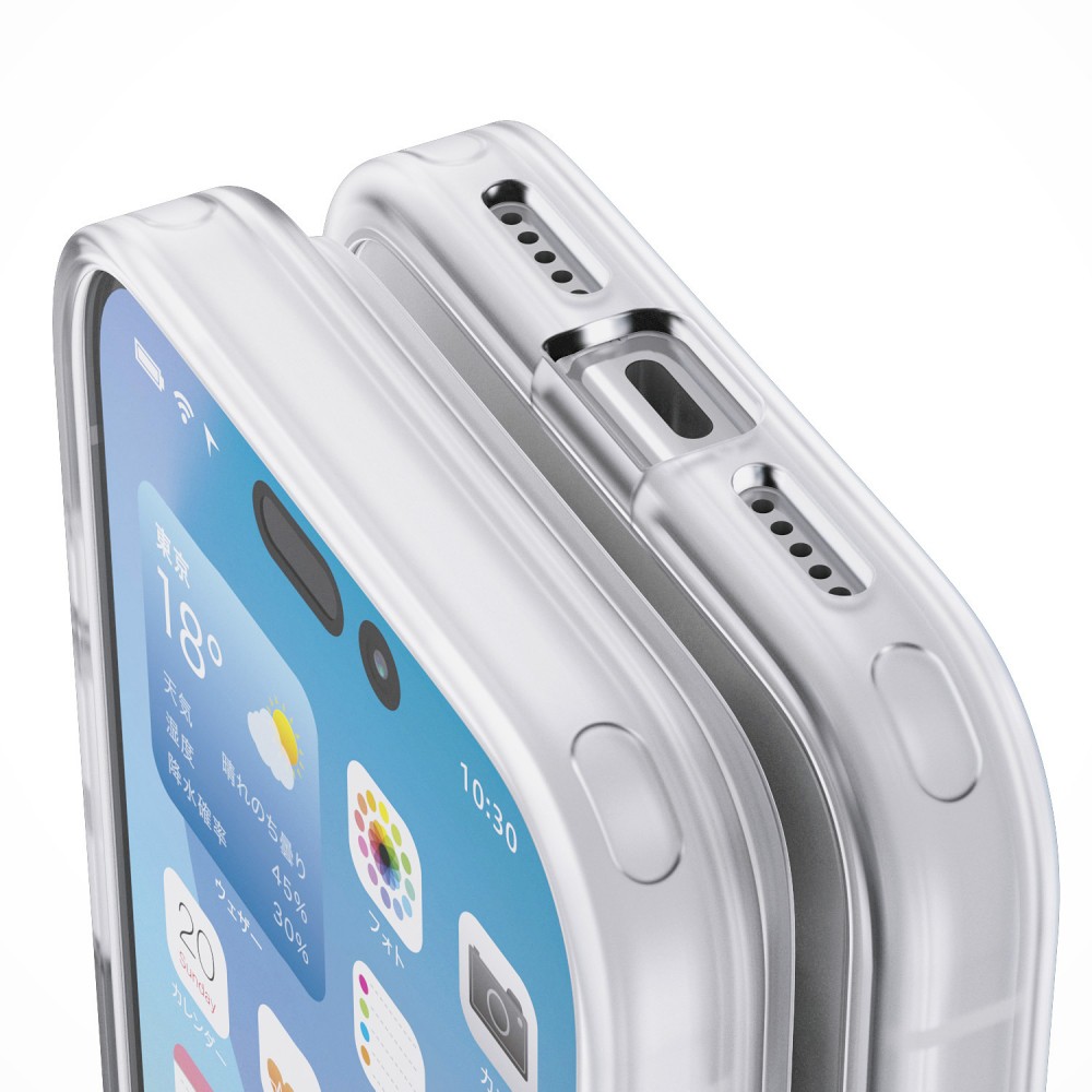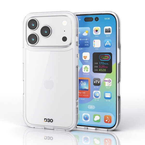 ミリタリーやモータースポーツで採用されている次世代の衝撃保護テクノロジーD3O(R)を使用した、クリアタイプの超耐衝撃性ハイブリッドケースです。 エレコム iPhone 17 Pro/ハイブリッドケース/D3O/オールクリア/メタルステッカー付 D3O Lab社製の特殊素材D3Oを使用した超耐衝撃性ハイブリッドケース 側面にミリタリーやモータースポーツで採用されている次世代の衝撃保護テクノロジーD3Oを使用した、超耐衝撃性ハイブリッドケースです。 高硬度5Hのポリカーボネート素材 背面は高硬度5Hの軽くて丈夫なポリカーボネート素材を採用しています。 ※表面硬度は実力値です。 効率的に衝撃を吸収 落下時に最も大きな衝撃が予想される四つ角にエアークッションを設置し、効率的に衝撃を吸収します。 ※画像はイメージです。