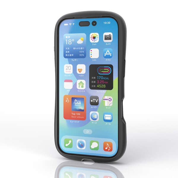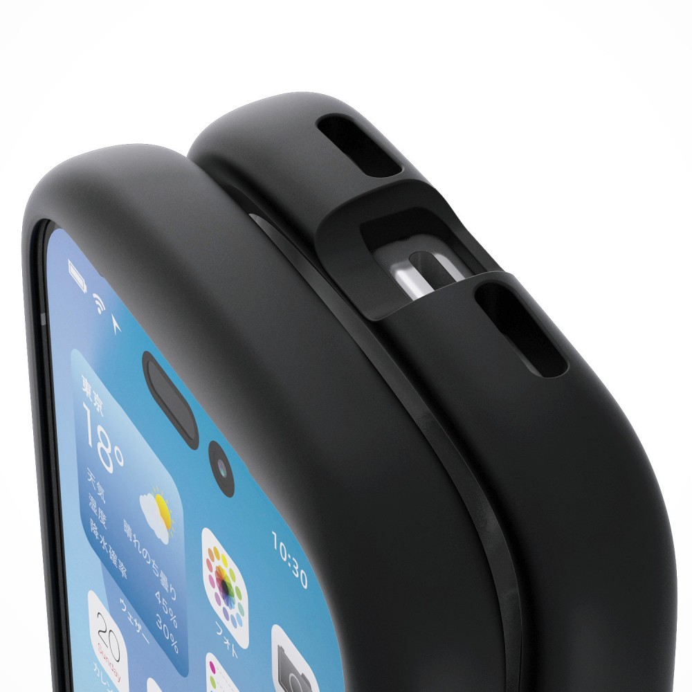 全周に配置した独自設計のエアークッションが衝撃を吸収し、背面には高硬度のポリカーボネート素材を採用。