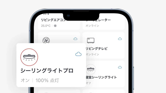 たとえば、エアコンやテレビなどをアプリに登録しておけば、照明とあわせて一括で管理が可能になります。「外出前にまとめて電源オフ」「帰宅前にエアコンをオン」といった操作も、スマートフォンひとつで行えます。