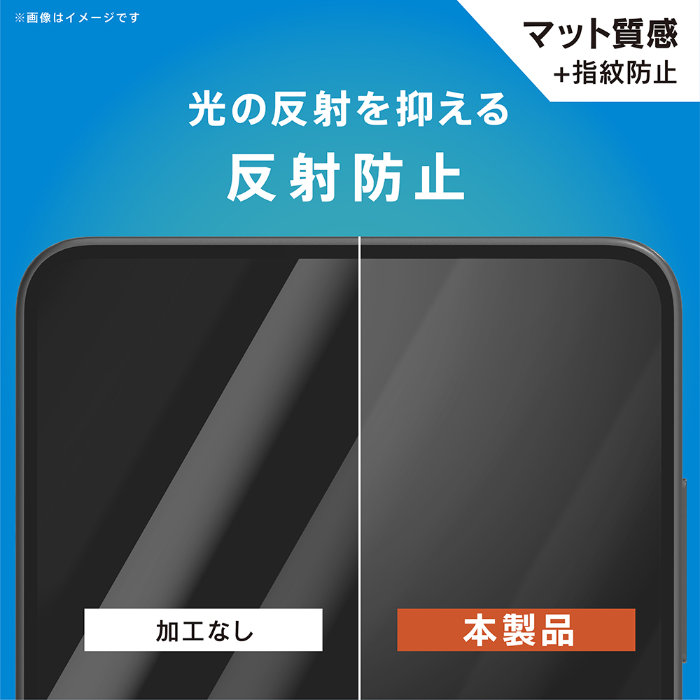 ギラつきを抑える反射防止(アンチグレア)タイプ。指すべりがさらさらしていて、フリック操作がしやすく、指紋も付きにくいタイプです。さらにLEDライトのギラつきを大幅に低減するため、目に優しくなっています。