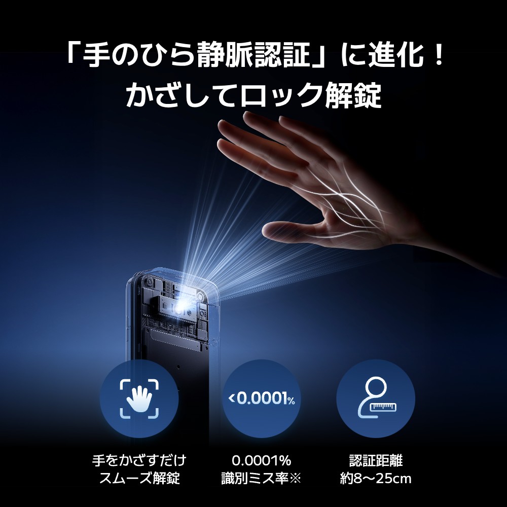静脈認証、手をかざすだけのスマート解錠