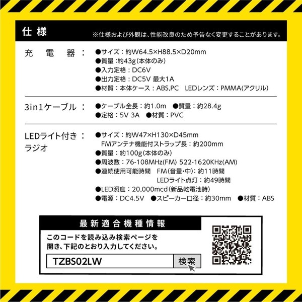 ●LEDライト付きラジオコンパクトボディを追求したAM/FM 2バンド仕様のラジオライトです。