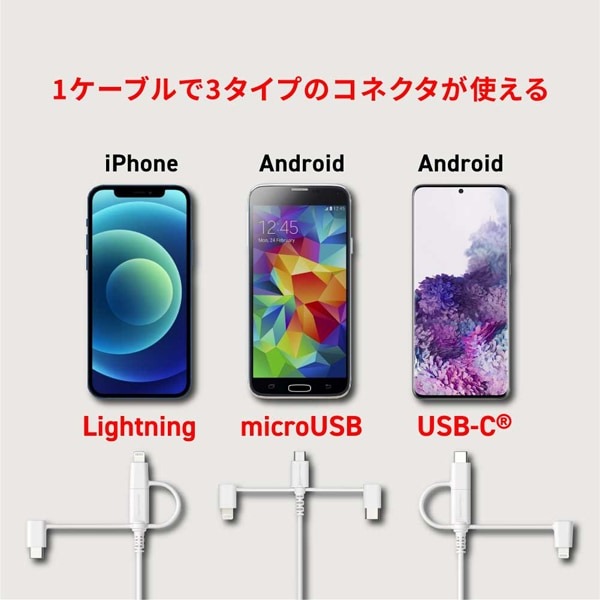 ●ほとんどのスマートフォンをカバーするケーブル Apple公式ライセンス品。