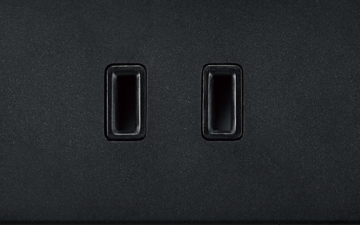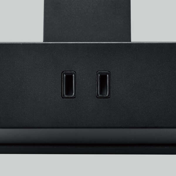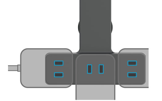 ACアダプタなどの大きなプラグを接続しても隣の差込口に干渉しにくいよう、中心と両端で差込口の向きを変えて配置しています。