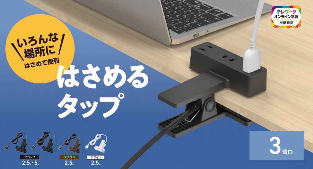タップを常設できないダイニングテーブルなどでテレワークや宿題をする際に、一時的に設置して利用するのに便利です。