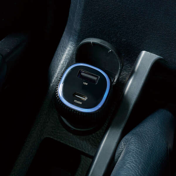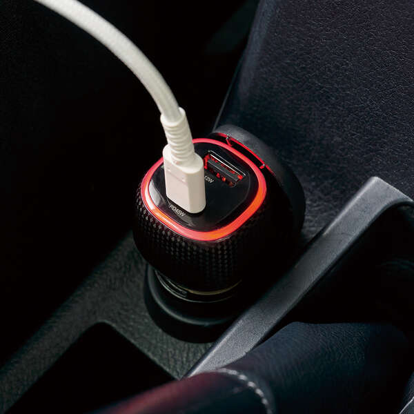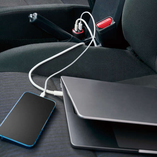 USB Power Delivery規格に準拠したUSB Type-C(TM)(USB-C(TM))ポートを1つと、USB-Aポートを1つ搭載し、スマートフォンなどを合計2台充電できる車載充電器です。