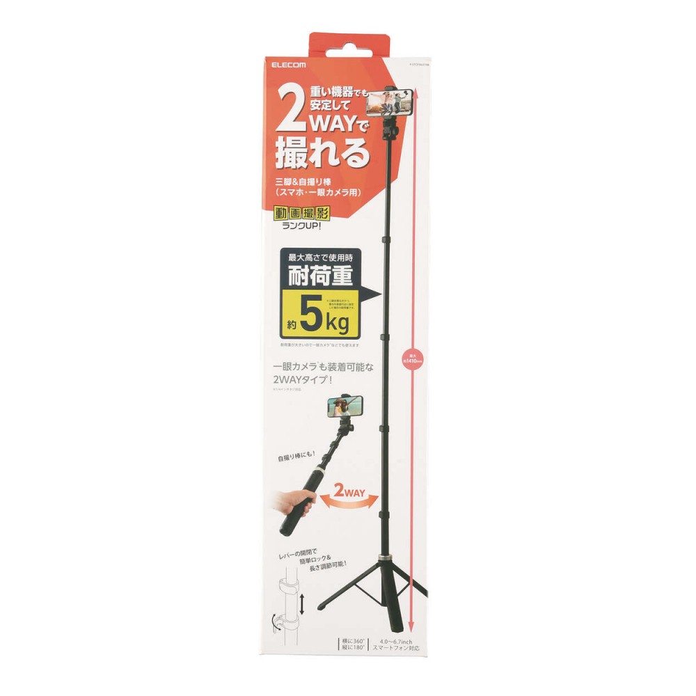 エレコム スマートフォン用三脚/自撮り棒/2way/高耐荷重/軽量
