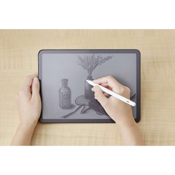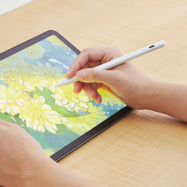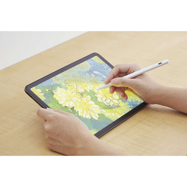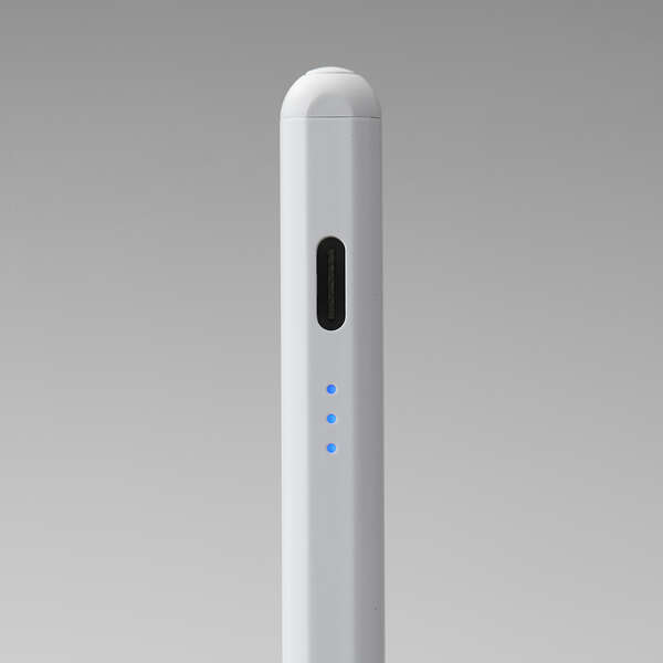 約20分でフル充電可能な急速充電機能を搭載した、iPad用アクティブタッチペンです。約1.6mmのペン先で細かい作業、メモや絵を描くのにおすすめ。ペンの傾き具合で線の太さを変えられる機能や、誤動作を防止するパームリジェクションにも対応しています。