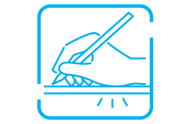 手のひらが画面に接触した状態でも、ペンを認識して誤動作を防止するパームリジェクション機能を搭載しています。