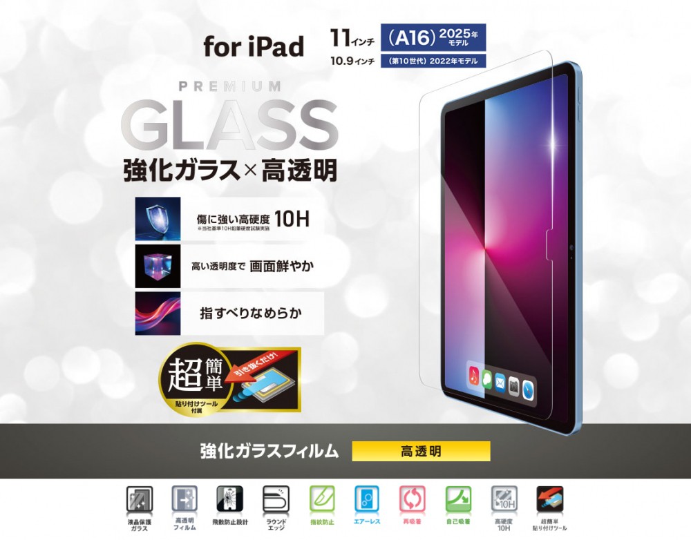 エレコム iPad11インチ(A16)/10.9インチ(第10世代)/ガラスフィルム/高透明/簡単貼り付けツール付
