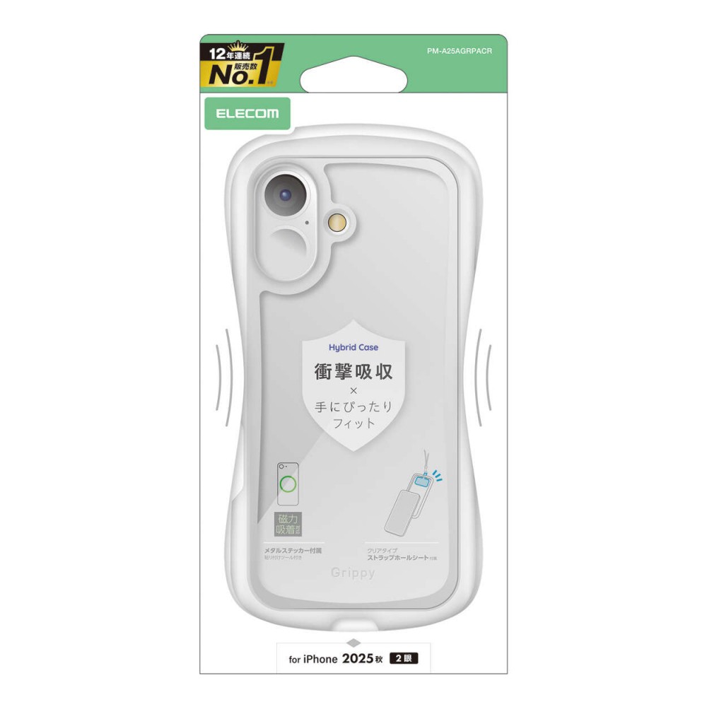 エレコム iPhone 17/Grippy/オールクリア/メタルステッカー付