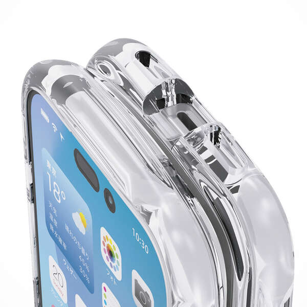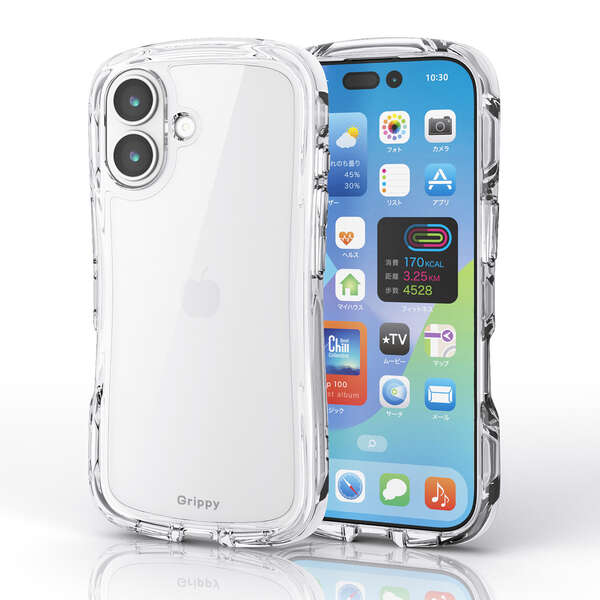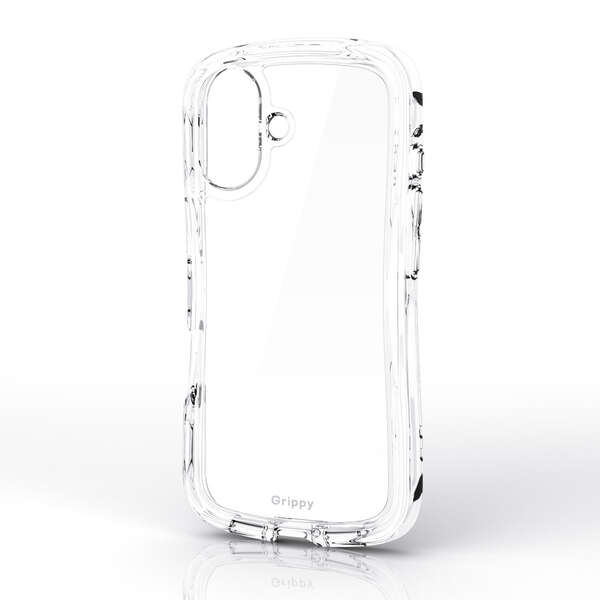 全周に配置した独自設計のエアークッションが衝撃を吸収し、背面には高硬度のポリカーボネート素材を採用。中央のくびれ形状に平坦な面を設けることで、手に馴染む快適なグリップ感を実現したGrippyシリーズのハイブリッドケースです。