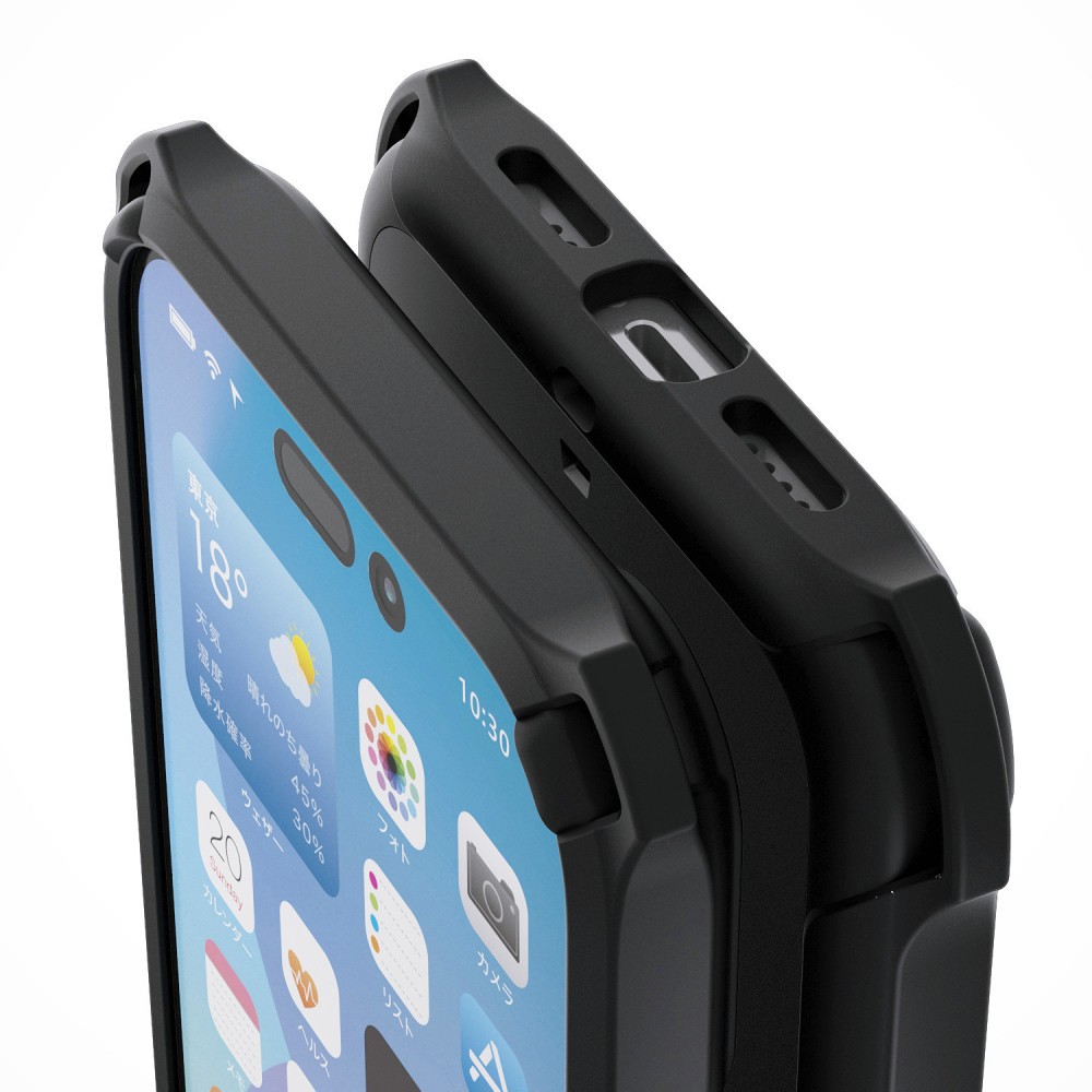 衝撃吸収に適したソフト素材と、それを外側から包むハード素材を使用したデュアルストラクチャー設計を採用しています。