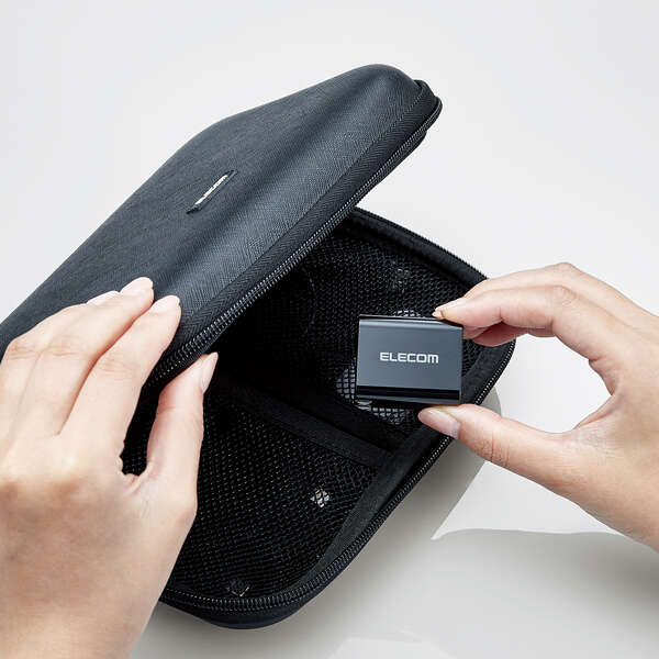 手のひらにすっぽり収まるコンパクトサイズと軽量で、外出や出張などの持ち運びに便利です。