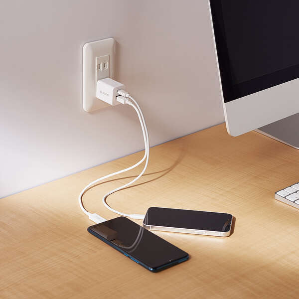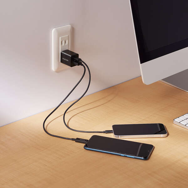 USB Type-CポートやUSB-Aポートを搭載し、それぞれのポートに対応するスマートフォンやタブレットなどでも別々のAC充電器を用意することなく、これ1台で充電できるAC充電器です。