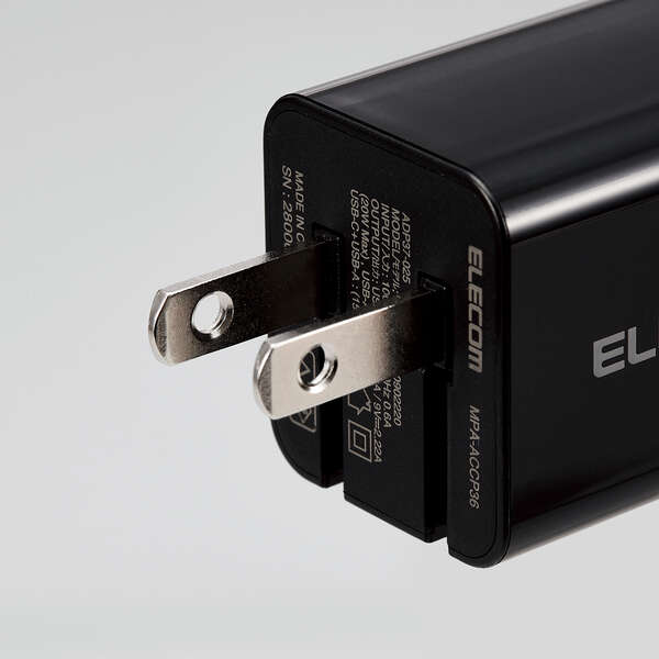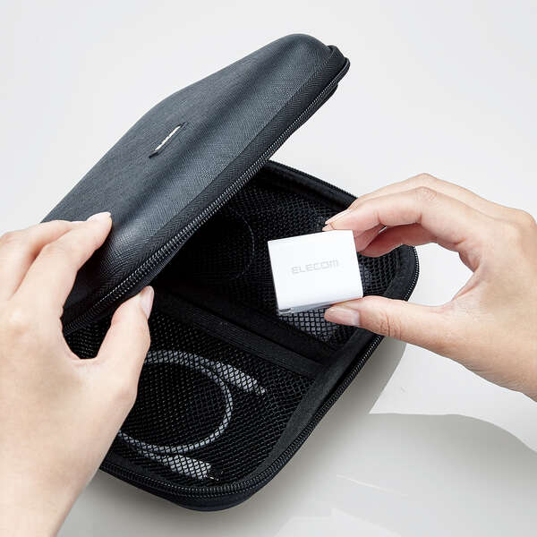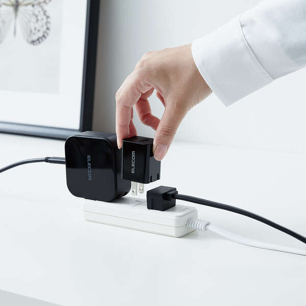 USB Type-C(TM)ポートとUSB-Aポートを搭載し、対応するスマートフォンなどを高速充電できるAC充電器です。手のひらにすっぽり収まるコンパクトサイズと軽量で、外出や出張などの持ち運びに便利です。