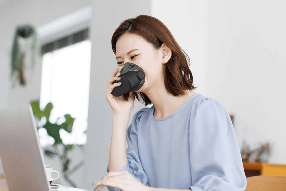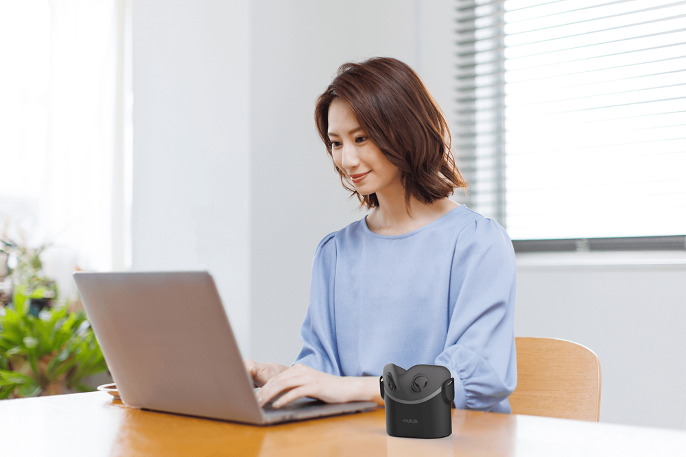 使い方は簡単。話したいときだけ口に当てて会話でき、音は外に漏れません。mutalk 2 の口元を上に向けて机に置くことで自動的にマイクがミュートし、持ち上げると瞬時にミュート解除。アプリ上でミュートボタンを押す必要はありません。mutalk 2 はイヤホンジャックも搭載しているので、スマートフォンでもご利用いただくことが可能です。