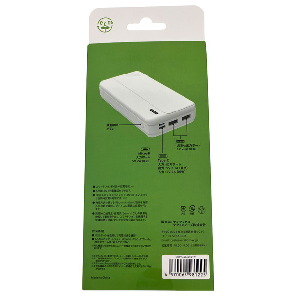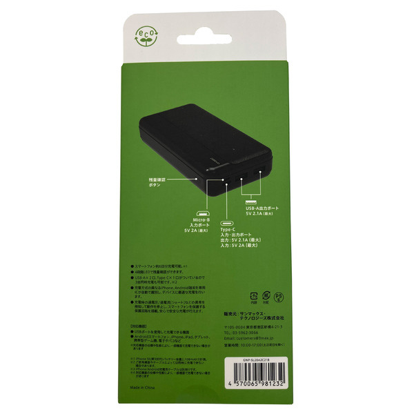 入力:最大5V/2.1A TYPE-C1口/microB1口。