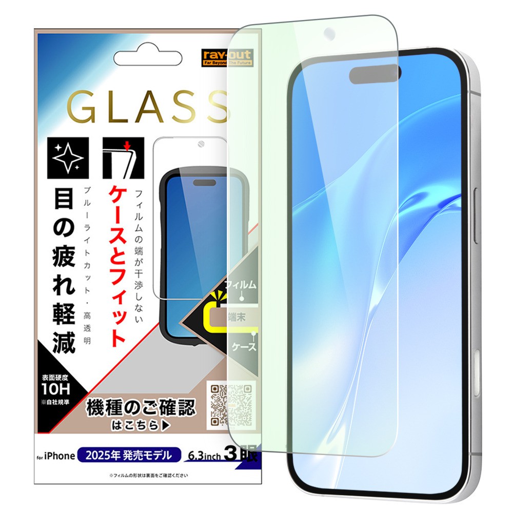 レイ・アウト iPhone 17 Pro ガラスフィルム マルチケースフィット 硬度10H ブルーライトカット高透明