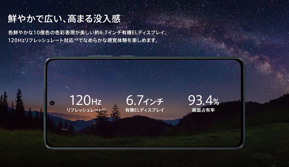 120Hzリフレッシュレート対応・約6.7インチ有機EL。