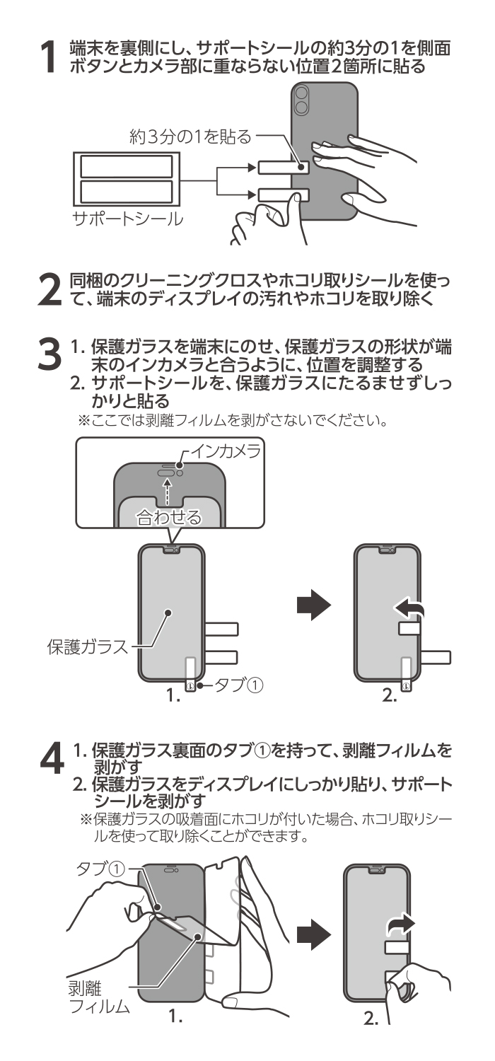 | 製品構成 | 保護ガラス ×1、クリーニングクロス ×1、ホコリ取りシール ×1、サポートシール ×2、取扱説明書/保証書×1 |