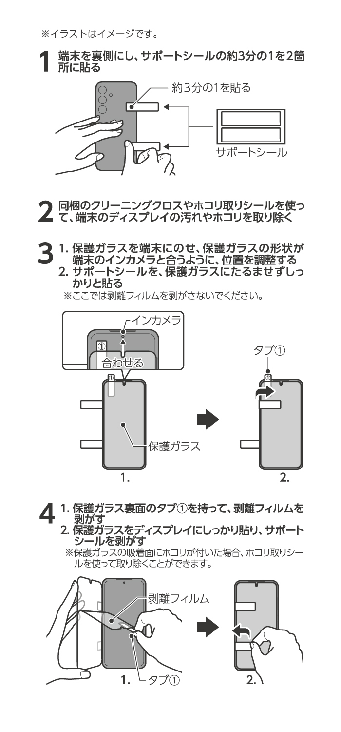 *1: 本製品(保護ガラス)を装着した状態で画面内指紋認証機能を利用する場合は、保護ガラスを装着した状態で指紋の再登録を行ってください。本製品を使用した場合、個人差により、画面内指紋認証機能が利用できない場合があります。