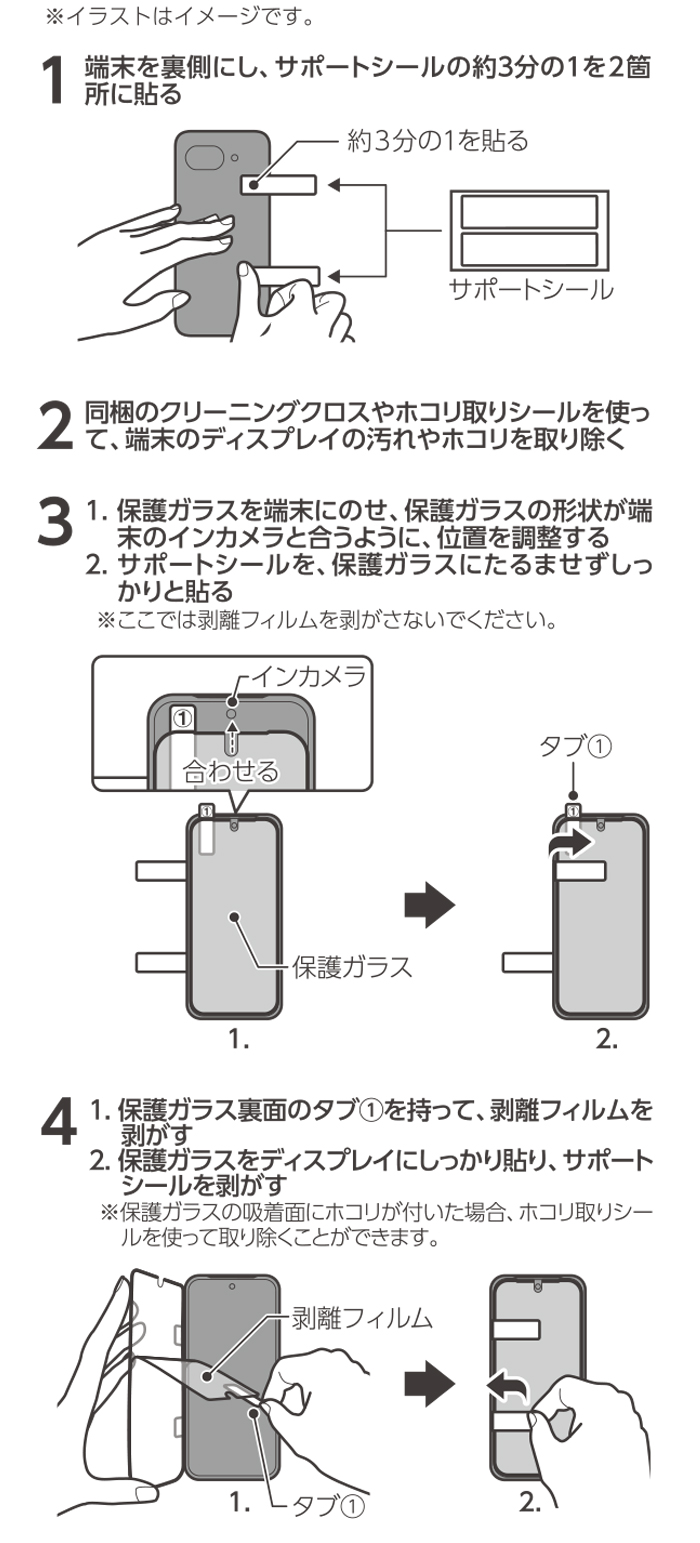 SoftBank SELECTIONのケースと干渉しない範囲で広範囲を保護する設計。保護ガラスの黒いフチを印刷することで貼り付けた際に一体感があります。