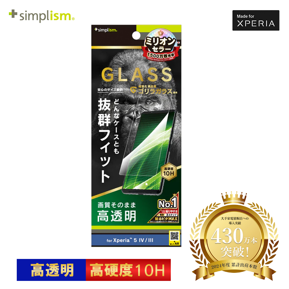 Simplism Xperia 5 IV / 5 III フルクリア ゴリラガラス 高透明 画面保護強化ガラス