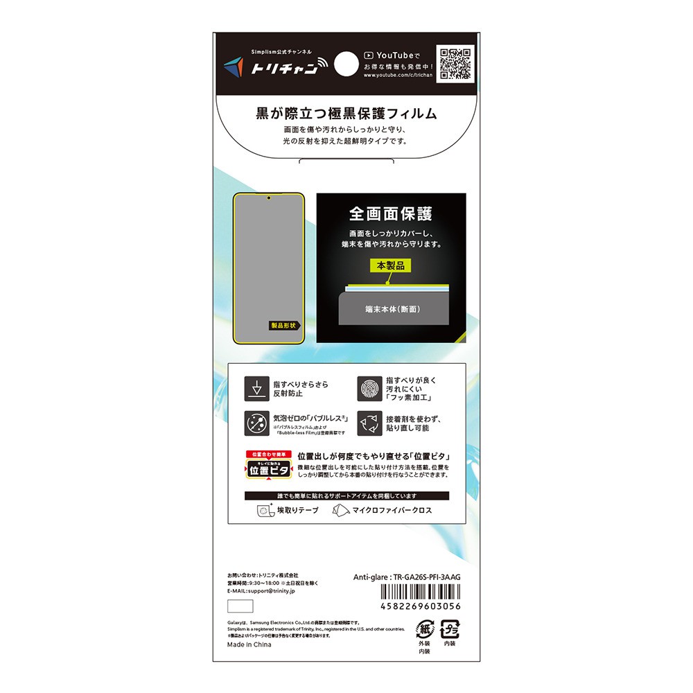 Simplism 極黒 超低反射 画面保護フィルム 位置ピタ Galaxy S26用 TR-GA26S-PFI-3AAG
