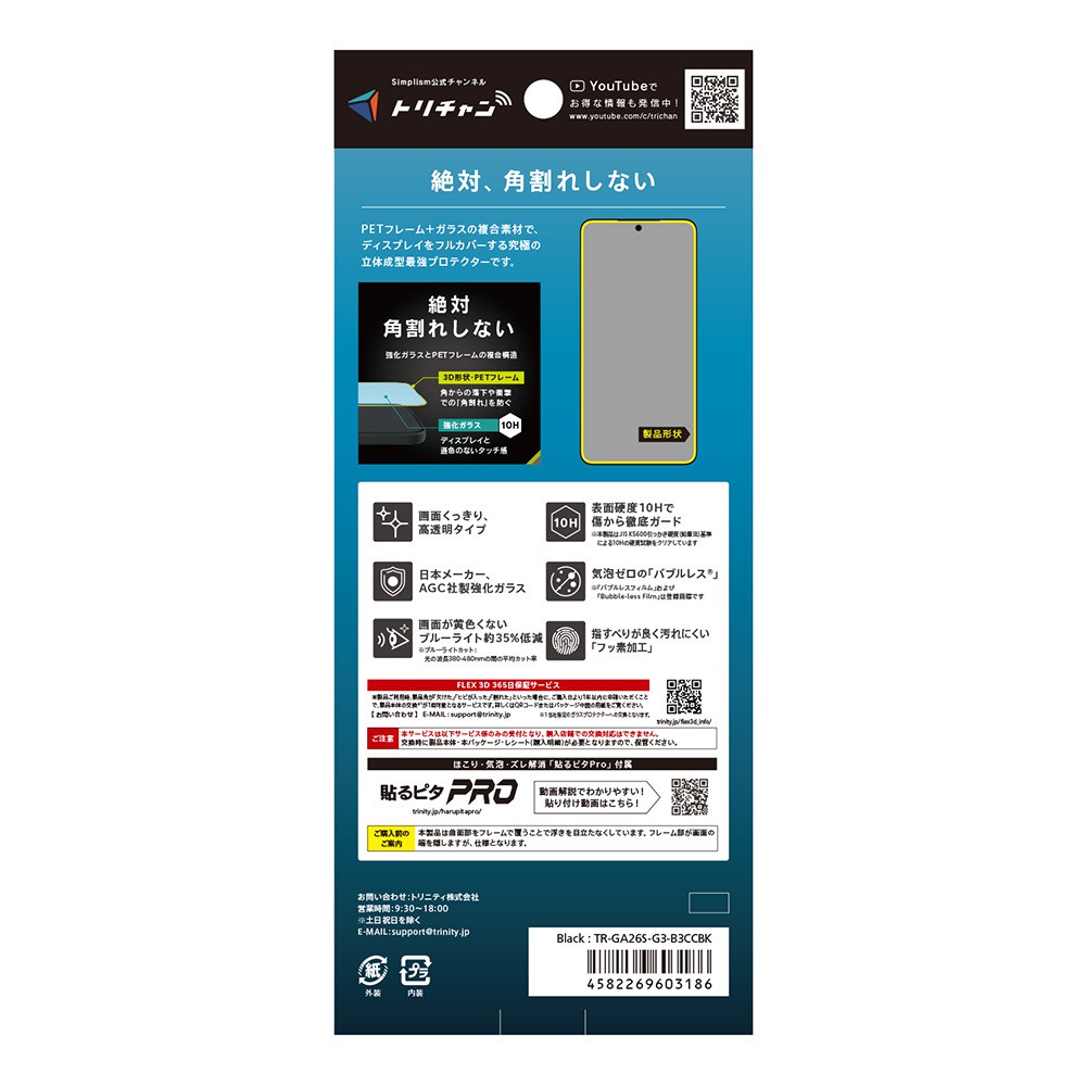 Simplism FLEX 3D 黄色くないブルーライト低減 複合フレームガラス Galaxy S26用 TR-GA26S-G3-B3CCBK