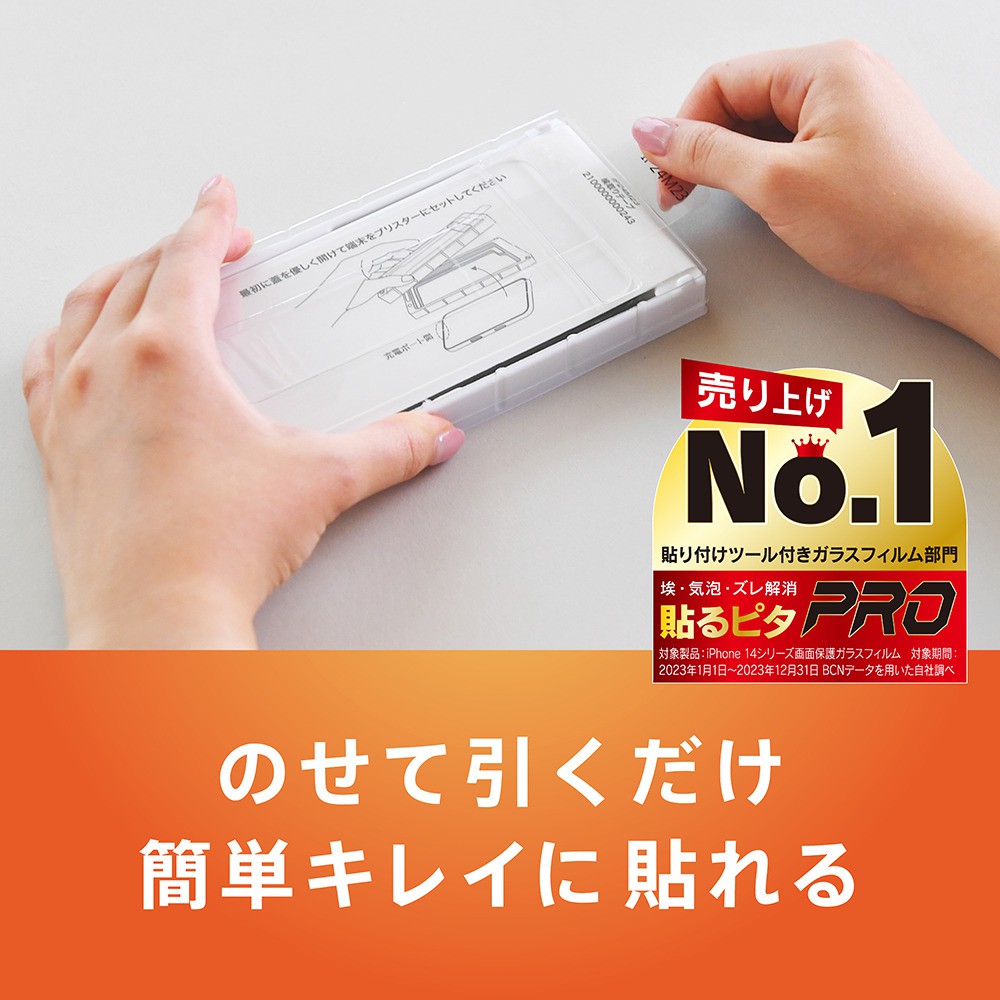 ガラスの貼り付けを簡単にできる「貼るピタPro」を同梱しています。